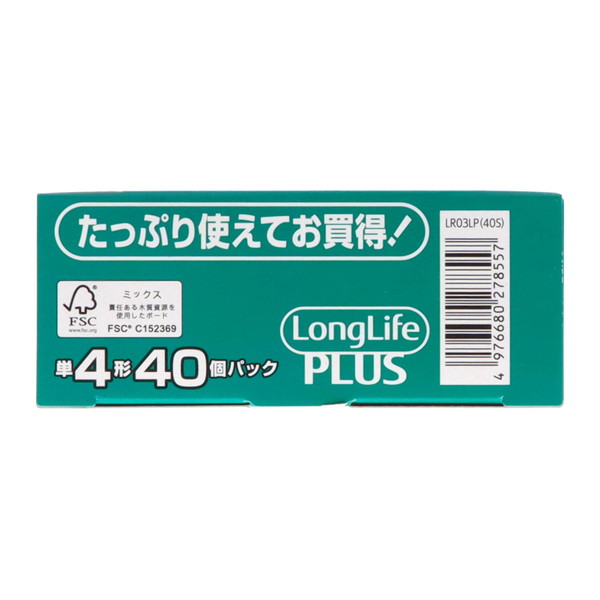 FDK FUJITSU Long LifePLUS ロング ライフプラス アルカリ乾電池 LR03LP(40S) 単4形 40個パック