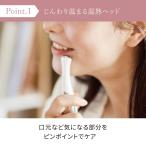 気になる部分をピンポイントでじんわり温熱うるおいケア。 音波振動とマイクロカレントで肌の角質層まで美容成分の浸透をサポート。 ◆じんわり温熱ヘッド 温かいヘッドが目元・口元などゆるみが気になる部分をピンポイントにトリートメント。化粧水や美容液を塗布した後、肌を滑らせて肌をケアします。 ◆マイクロカレント(微弱電流) 身体に流れる微弱