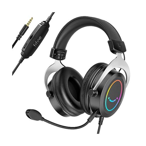 FIFINE ゲーミングヘッドセット 3.5mm接続 有線 密閉型 RGBライティング 脱着式マイク付き PC/スマホ/Switch/PS4/P