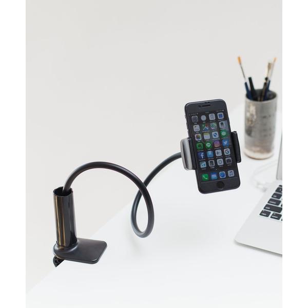 - 「好きな場所、好きな角度でスマートフォンが楽しめるアームスタンド」 キッチンやリビング、ベッドサイド、ドライブ、ワークスペース等さまざまなシーンで活躍するスマートフォンスタンドです。自由な方向に曲げられるアーム・360度回転するジョイントボール、お好きな位置と角度で調整可能。イヤフォンや充電ケーブルコードを接続したままでも使用できます。 【材質】ABS・PVC 【サイズ】全長約740mm、アーム(クリップ部分含まず)約650mm 【対応スマートフォンサイズ】幅約60~85mm 【土台(クランプ)の挟める厚み】約10~80mm 【重量】約235g 【耐荷重】約300g 【対応機種】iphone(X/8/6s/8Plus/7Plus/6sPlus/SE)AQUOS/arrows/Galaxy/HUAWEI/Xperia ※2018年3月の対応機種情報です。 【注意】スマートフォン及びケースは付属しておりません。使用上の注意をよくお読みになってからご使用ください。 ※この商品は【メール便不可】です「好きな場所、好きな角度でスマートフォンが楽しめるアームスタンド」 キッチンやリビング、ベッドサイド、ドライブ、ワークスペース等さまざまなシーンで活躍するスマートフォンスタンドです。自由な方向に曲げられるアーム・360度回転するジョイントボール、お好きな位置と角度で調整可能。イヤフォンや充電ケーブルコードを接続したままでも使用できます。 材質 ABS・PVC サイズ 全長約740mm、アーム(クリップ部分含まず)約650mm 対応スマートフォンサイズ 幅約60~85mm 土台(クランプ)の挟める厚み 約10~80mm 重量 約235g 耐荷重 約300g 対応機種 iphone(X/8/6s/8Plus/7Plus/6sPlus/SE)AQUOS/arrows/Galaxy/HUAWEI/Xperia ※2018年3月の対応機種情報です。 注意 スマートフォン及びケースは付属しておりません。使用上の注意をよくお読みになってからご使用ください。