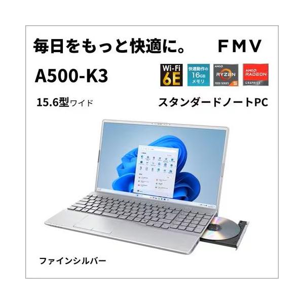 新品 富士通 ノートPC FMV Note A FMVA500K3S[15.6型 | フルHD | Ryzen 5 | 16GB | 256GB | Windows 11 | Office H&B | ファインシルバー] 送料無料
