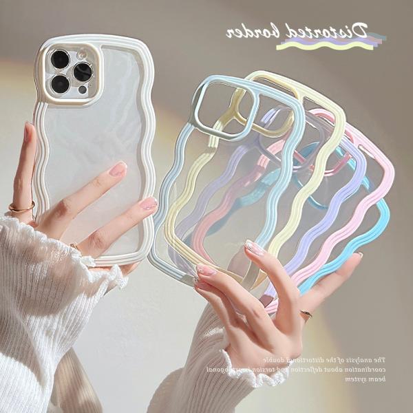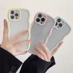 iPhone14 13 15ケース スマホケース iPhone11カバー iphone12ケース クリア iPhoneケース アイフォンケース フレーム 透明 ウェーブ デコ パステルカラー