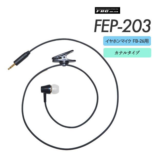 - F.R.C. カナルタイプ イヤホン 【 FEP-203 】 主な仕様 メーカー F.R.C (エフ・アール・シー) 名称 カナルタイプ イヤホン 型番 FEP-203 コード形状 ストレートコード コード長 約47.5cm プラグ形状 φ2.5mm 1ピン 付属品 大・中・小の耳ゴム 各1個 特長 FEP-203は、F.R.C.製のタイピン型PTTマイクに対応した、カナルタイプイヤホンです。 デジタル簡易無線や特定小電力トランシーバーに対応したFB-26シリーズと、スマホ用無線機アプリに対応したAN-26/AP-26に接続してご使用いただけます。 イヤホン形状は、音が漏れにくいカナル型で、左右どちらの耳にも装着が可能です。 イヤーピースを耳の穴に入れ込んで使うため、受信内容が聞こえやすく、外部にも漏れにくいです。 なお、同様のφ2.5mmプラグのイヤホンは、合計5種類ご用意がございます。 下記よりお好みのイヤホン形状をお選びいただけます。 ・FEP-201 インナータイプ ・FEP-202 耳かけタイプ ・FEP-203 カナルタイプ ・FEP-204 D型フックタイプ ・FEP-205 耳あてフックタイプ ・FEP-206 耳かけスピーカータイプ F.R.C. φ2.5mmプラグのイヤホン一覧 ■FEP-201 インナータイプ ■FEP-202 耳かけタイプ ■FEP-203 カナルタイプ ■FEP-204 D型フックタイプ ■FEP-205 耳あてフックタイプ ■FEP-206 耳あてフックタイプ F.R.C. φ2.5mmジャック付属の製品一覧 ■FB-26無線機用イヤホンマイク ※標準でカナル型イヤホンが付属 ■AN-26スマホ用無線機アプリ対応タイピン型PTTマイク ■AP-26スマホ用無線機アプリ対応電池内蔵 タイピン型PTTマイク ※PTTボタン長押しで送信状態維持の操作可能F.R.C.製 オプション FB-26/AN-26/AP-26 対応 カナルタイプイヤホン 【 FEP-203 】