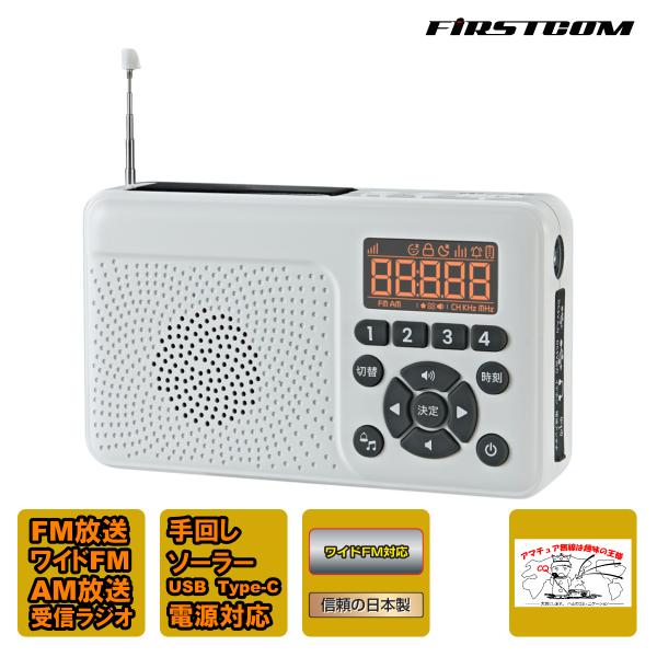 FC-W118RD(W) FIRSTCOM 手回し&ソーラー充電防災ラジオ 日本製