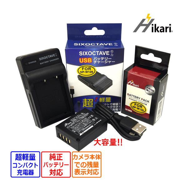 NP-W126S NP-W126 FUJIFILM フジフィルム 互換バッテリー 1個と 互換USB充電器 の2点セット 高品質セル搭載 純正品にも対応 BC-W126S BC-W126