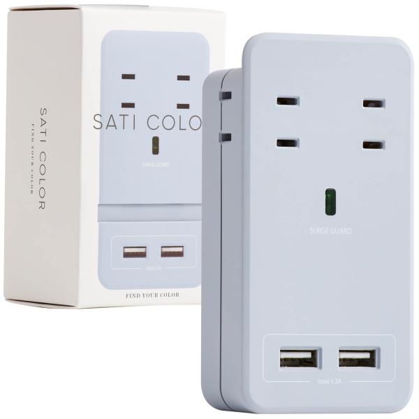 Fargo SATI COLOR 壁挿し 電源タップ コードレス 急速充電 USB 4.2A AC4個口 全14色 スマホスタンド スモーキーブルー