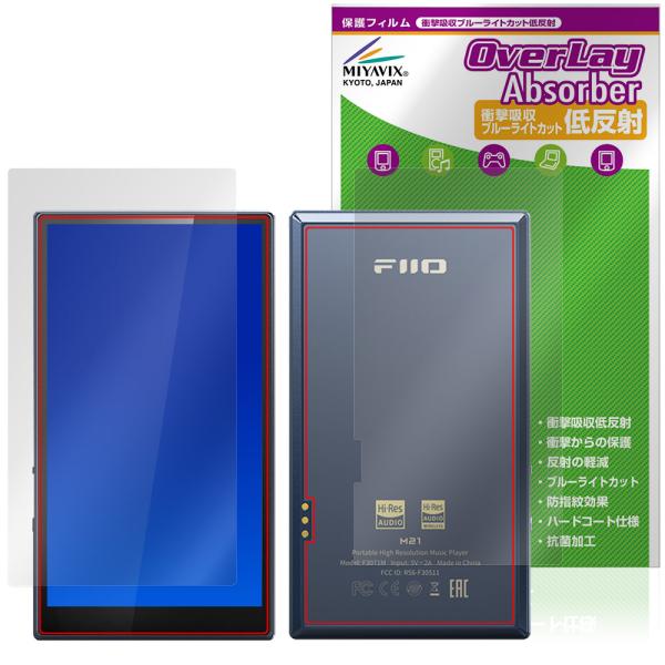 Fiio M21 表面 背面 フィルム OverLay Absorber 低反射 for フィーオ デジタルオーディオプレーヤー 衝撃吸収 ブルーライトカット 抗菌 爆買