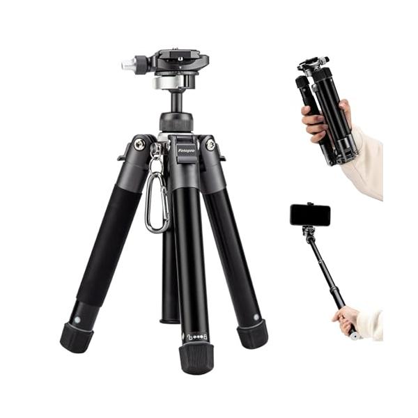 Fotopro ミニ三脚 152cm 軽量コンパクト 旅行用 360度ボールヘッド 着脱式で自撮り棒としても利用可能 スマホマウント付き 耐荷重