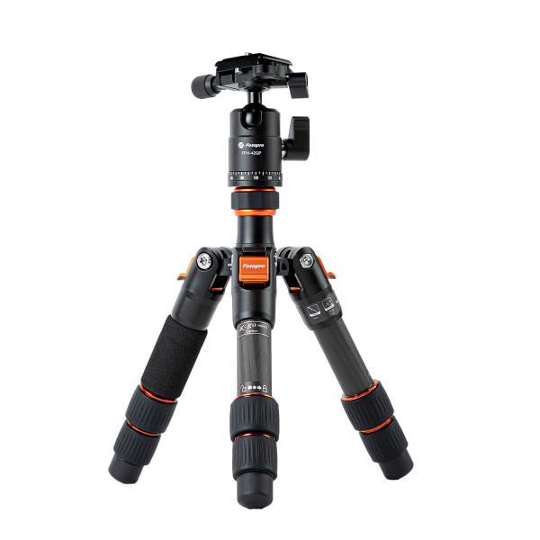- 軽くて丈夫なカーボン製パイプを使用した、一眼レフやミラーレスカメラ、望遠レンズなどの大型カメラまで対応可能な耐荷重8kgの小型卓上三脚です。マクロ撮影や商品撮影、長時間露光撮影、タイムラプス撮影、ライブ配信など、多用途でご使用いただけます。開脚幅が3段階あり、最低高16.5cmのローアングル撮影も可能です。雲台下部とは別に、カメラ台下部にもパン機構を備えており、雲台が垂直にならないシチュエーションでもカメラ台を水平に保ちながらのパンを行うことができます。