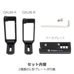 - 幅広いサイズのカメラに対応する汎用L型プレートセット QAL-88は、マイクやモニターなどの補助機材取り付けに便利なL型プレートセットです。アルカスイス規格の雲台に対応しており、付属の2種類のプレートを使用する機材に合わせてお選びいただけます。前後左右に位置調整でき、アクセサリー端子使用の妨げになりにくい仕様です。 【主な特長】 ・2種類のL型プレート お使いのカメラの大きさに合わせて最適な方をお選びいただけます ・アルカスイス互換 アルカスイス規格対応の雲台と組み合わせて使用することができます ・構図のズレが少ない 縦位置と横位置を切り替えた際の構図の変化が少なく済み、重心も安定します ・前後左右に位置調整が可能 マイクやシャッターケーブルなどのアクセサリー端子の使用の妨げにならないように 前後方向は、±1cm、左右方向はカメラネジから最小55~最大100mmまで位置調整が可能です 【製品仕様】 QAL-88-A 製品サイズ:H100×W100×D38mm (L型プレート、ベースプレートセット時) 重量:112g QAL-88-B 製品サイズ:H92×W100×D38mm (L型プレート、ベースプレートセット時) 重量:102g ベースプレート 製品サイズ:H15×W100×D38mm 重量:51g 材質 アルミニウム合金(L型プレート、ベースプレート) パッケージサイズ 135×42×67mm,重量:217g