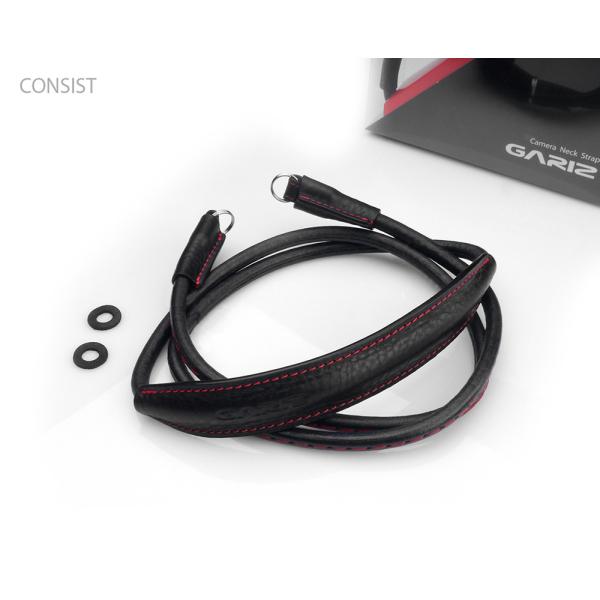 GARIZ ミラーレス一眼カメラ用 イタリアンレザー カメラネックストラップ(80cm) XS-CSNSBKR ブラックレッドステッチ