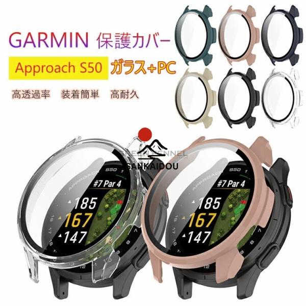 - GARMIN Approach S50 用 ケース ガラスフイルム一体型ケース 保護フィルム PC素材+強化ガラス 装着簡単 耐衝撃 高透過率 指紋防止 傷防止 GARMIN Approach S50