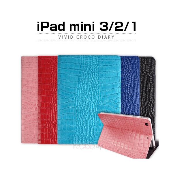 - 高級感・存在感あるデザインの本革ケース。Apple iPad mini3/2/1に対応。天然皮革にクロコダイルの型押し、それでこれほどビビッドなカラリングが美しいケースはなさそうです。