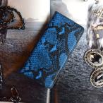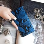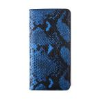 スマホケース 本革 レザー ブルー 青 へび柄