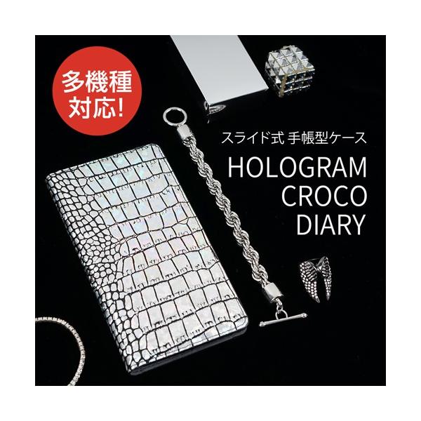 スマホケース 本革 手帳型 スライド式 多機種対応マルチケース Gaze Hologram Croco Diary(ゲイズ ホログラムダイアリー)Mサイズ Lサイズ