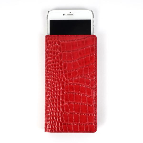 GAZE 多機種対応スライド式 手帳型ケース Vivid Croco Diary Lサイズ レッド 仕入先在庫品