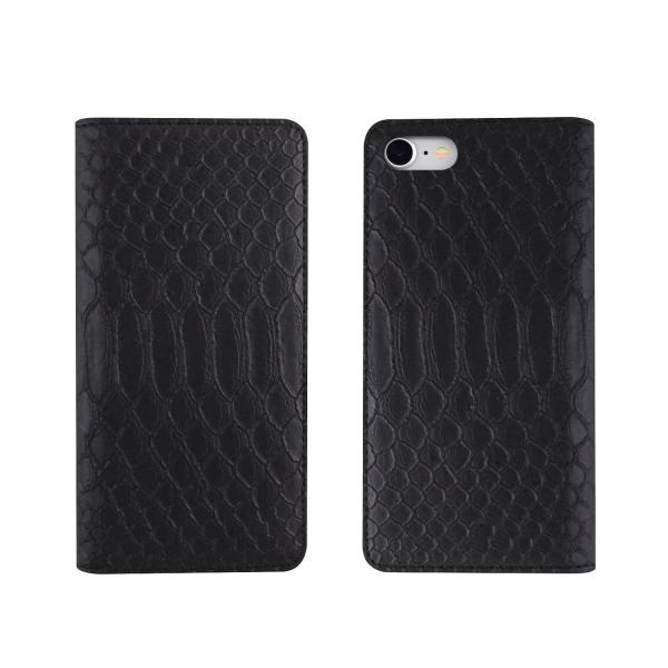 商品名:GAZE iPhone SE (第3世代) ケース カバー Matt Python Diary [ 手帳型 アイフォン パイソン柄PU 耐久性 カード収納 ] iPhone SE (第2世代) / 8 / 7 GZ23306iSE3BK (ブラック)【国内正規品】