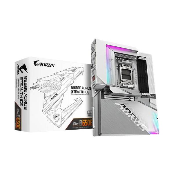 - GIGABYTE B650E AORUS STEALTH ICE 背面コネクタ・ホワイト基板採用 AMD Ryzen 9000/8000/7000シリーズプロセッサ対応 Socket AM5 DDR5 ATX マザーボード B650E A STEALTH ICE MB6539 MB6539 日本正規代理店製品 保証2年 バックコネクトデザインを採用した「GIGABYTE STEALTH」シリーズのB650チップセット搭載マザーボード。ケーブルルーティングを背面で行うことで、前面はシンプルで美しいデザインを実現し、すっきりとした構成が可能です。 B650チップセットを搭載し、AMD Ryzen 9000/8000/7000シリーズCPU・APUに対応。DDR5メモリにも対応しており、高速なシステム環境を構築可能。また、多数のUSBポートを備えています。 VRM部の大型ヒートシンクにマザーボード前面を覆うほどの超大型のヒートシンクを採用。バックコネクタによりケーブルがエアフローを妨げず、効率的な放熱とスムーズなエアフローを実現します。 フロントには高速なUSB3.2 Gen2x2 Type-Cポート、リアにはDP1.4対応のUSB3.2 Gen2 Type-Cポートを搭載。ネットワークには2.5G有線LANとWiFi 7(日本国内は6E)を備え、高速デバイスやネットワーク接続に対応しています。 AMD B650チップセット搭載、AMD Ryzen 9000/8000/7000シリーズのプロセッサーに対応したATXマザーボードです。背面コネクタを採用したシンプルで洗練されたデザインに加え、大型M.2ヒートシンクによる優れた冷却性能を実現しました。 ■フォームファクタ:ATX (305 x 244mm) ■チップセット: AMD B650 ■CPUソケット:AMD Socket AM5 ■対応CPU:AMD Ryzen 9000/8000/7000シリーズ ■電源フェーズ:12+2+2 60A Dr.MOS デジタル電源フェーズ ■メモリソケット:4x DDR5 UDIMM 最大192GB ■対応メモリ:DDR5 4400~8000 XMP3.0/EXPO対応 ■拡張スロット:1x PCIE 5.0 x16 ■ストレージ:3x M.2 (1x PCIe5.0x4、2x PCIe4.0x4)、4x SATA3 ■映像出力:1x USB3.2 Gen2 Type-C(DP1.4対応)、1x HDMI(2.1)、1x HDMI(1.4 内蔵ディスプレイ用) ■USB(リア):1x USB3.2 Gen2 Type-C(映像出力と兼用)、2x USB3.2 Gen2 Type-A、5x USB3.2 Gen1 Type-A、4x USB2.0 Type-A ■USB(フロント):1x USB3.2 Gen2x2 Type-C、2x USB3.2 Gen1 ヘッダ、4x USB2.0 ヘッダ ■サウンド:Realtek 7.1ch HD Audio Codec ■ネットワーク:有線LAN 1x 2.5GbE LAN、無線LAN Realtek WiFi 7(日本国内は6E)、Bluetooth 5.4 ■その他機能 ■特徴:背面コネクタ、ホワイト基板、一体型IOリアパネル、WiFi EZ-Plug、ボタン式 PCIe EZ-Latch、M.2 EZ-Latch、大型ヒートシンク(VRM ■M.2)、Q-Flash plus ■対応OS:Windows 11 64bit ■付属品:クイックスタートガイド、アクセサリーキット、Wi-Fiアンテナ 商品コード39078035217商品名GIGABYTE B650E AORUS STEALTH ICE 背面コネクタ・ホワイト基板採用 AMD Ryzen 9000/8000/7000シリーズプロセッサ対応 Socket AM5 DDR5 ATX マザーボード B650E A STEALTH ICE MB6539型番B650E A STEALTH ICEカラーホワイト※他モールでも併売しているため、タイミングによって在庫切れの可能性がございます。その際は、別途ご連絡させていただきます。※他モールでも併売しているため、タイミングによって在庫切れの可能性がございます。その際は、別途ご連絡させていただきます。