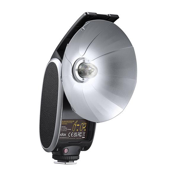 1960年代の撮影スタイルを彷彿とさせる、リフレクターとフラッシュバルブ調の発光部を持つ外観デザイン、機能美、また精巧な構造が特徴のカメラフラッシュです。