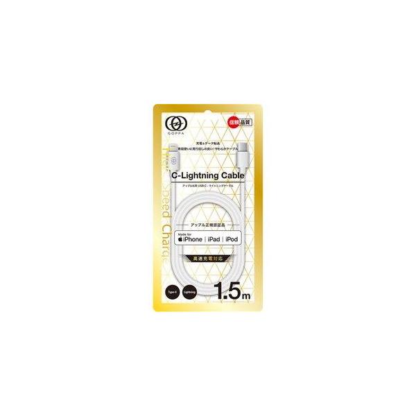 - ゴッパ GP-TCLC15MG1/W Type-C-Lightningケーブル 1.5m ホワイト発売日:2019年12月4日●充電・データ転送ができるUSB-C to LightningケーブルLightningコネクタを搭載したiPhone・iPod・iPadと、USB-Cポートを搭載した充電器・パソコンを接続し、高速充電・データ転送ができるUSB-C to Lightningケーブルです。●Appleの正規ライセンス取得安定したデータ通信が可能で、iOSを最新版にアップデートしても引き続き使用できます。●最新の高速充電に対応(Power Delivery)iPhoneの高速充電に対応しています。※iPhone8以降に発売されたPower Delivery対応機種とPower Delivery規格に対応した充電器を使用して充電した場合。【仕様】ケーブルタイプ:Type-C-Lightning長さ:1.5mPower Delivery対応