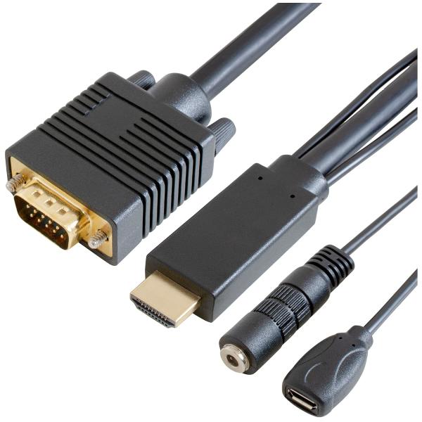 GOPPA ゴッパ HDMI VGA(音声用3.5mm・電源用micro-B付き) 変換ケーブル 1m GP-HDV15K-10
