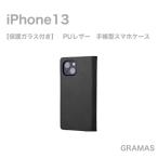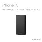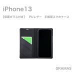 GRAMAS iPhone 13 PUレザー 手帳型スマホケース 保護ガラスフィルム付き グラマス ブラック ボルドー