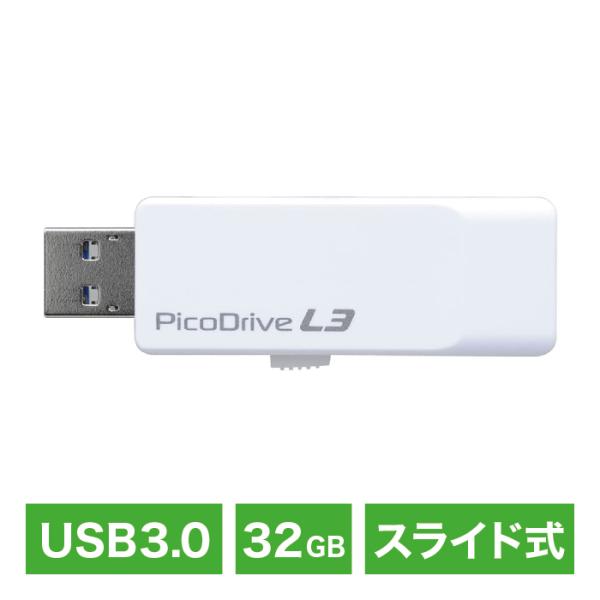 USBメモリ|32GB|GREEN HOUSE グリーンハウス|USB3.0/2.0|キャップレス スライド式|ホワイト|ネコポス便配送制限6個まで|GH-UF3LA32G-WH