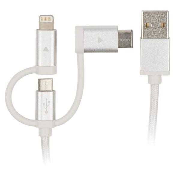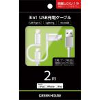 3in1 USB充電ケーブル 2m 充電 データ転送 シルバー グリーンハウス GH-ALTBCA200-SV