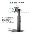 - ●昇降機能付きのスタンドタイプ ディスプレイを昇降させる機能を持ち、上下左右の首振り調整が可能です。 スタンドタイプなので、固定するための天板や穴などが不要なため簡単に設置ができます。 設置後にもディスプレイを移動させたい人や固定場所が無い机に設置したい方にオススメです。 ●デスク上のスペースを有効活用 液晶ディスプレイの台座(スタンド)が平らになって、デスク上すっきり! 机を広々と使えるので、作業効率が上がります。 ●ディスプレイの取り付けが簡単なセパレート式 ディスプレイ取り付け部が取り外せるセパレート式なので、液晶ディスプレイ背面にネジ止めする際に、「持ち上げながらネジを止める」などの困難な作業が要らず、簡単に取り付け可能です。 ●縦位置での使用も可能 液晶ディスプレイを回転することができ、通常の横位置だけでなく縦位置での使用も可能です。 ●付属工具を収納でき、いつでも関節部の調整ができる つい無くしたり、どこに行ったか分からなくなる付属工具の六角レンチですが、ケーブルガイドにキチンと収納部を用意しました。 工具の取り出しが簡単なので、関節が固い・柔らかいなどネジを気軽に調整できます。 ●設置可能スペース アームを設置するには、 奥行:220mm以上 幅:280mm以上 のスペースが必要です。 ●対応ディスプレイ 対応サイズ〜32インチ 耐荷重:〜7kg ■目安対応モニターサイズ:17インチ(17型),17.3インチ(17.3型),18.5インチ(18.5型),18.51インチ(18.51型),19インチ(19型),19.5型(19.5インチ),20インチ(20型),20.1インチ(型),21.3インチ(21.3型),21.5インチ(21.5型),22インチ(22型),23インチ(23型),23.6インチ(23.6型),23.8インチ(23.8型),24インチ(24型),24.5インチ(24.5型),27インチ(27型),28インチ(28型),31.5インチ(31.5型),32インチ(32型) ■対応モニターメーカー例:※すべてのモニターに対応できるわけではございません。必ず商品ページの適合条件をご確認ください。IO DATA(IOデータ)・iiyama(イイヤマ)・AOC・Acer(エイサー)・ASUS(エイスース・アスース)・EIZO(ナナオ)・HP(ヒューレッド・パッカード)・LGエレクトロニクス(LG Electronics)・シャープ(SHARP)・DELL(デル)・フィリップス(PHILIPS)・ViewSonic(ビューテック)・BenQ(ベンキュー)・JAPANNEXT・NEC・Lenovo(レノボ)・ADTECHNO・プリンストン・MSI・Pixio・GIGABITE(ギガバイト)・ZOWIE・ROG・Optix・TUF Gaming・ProLite・FlexScan・UltraGear・NITRO・GigaCrysta・ProArt・MultiSync・DuraVision・AlphaLine・plus one・LUCA・Vero・ThinkVision・AQCOLOR・ZenScreen・MOBIUZ・ColorEdge・G-MASTER・BRAVIA・Predator・ALIENWARE ●安心の1年間保証 ●ケーブルをスッキリまとめられる、ケーブルガイド付き ●鉛などの含有量を抑えた環境にやさしい、RoHS指令対応 欧州の環境基準であるRoHS指令に準拠した、環境にやさしい製品です。