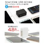 充電器 AC充電器 AC-USB アダプタ 4ポート 4.8A スマートIC 急速充電 iPhoneやスマートフォンを同時に4台まで充電できる グリーンハウス GH-ACU4B