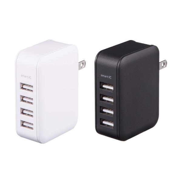 - コンセントからiPhoneやスマートフォンを同時に4台まで充電できる。機器に合わせて出力を制御するスマートIC対応。4ポート合計4.8Aの高出力で、iPadや急速充電にも対応。過電流防止、過電圧防止、ショート防止の各種保護機能を搭載。持ち運び・収納に便利な可変式プラグ採用(耐トラッキング加工済み)。鉛などの含有量を抑えた環境にやさしい、RoHS指令対応。カラーバリエーション:ホワイト(4511677117237/GH-ACU4B-WH)、ブラック(4511677117244/GH-ACU4B-BK)。