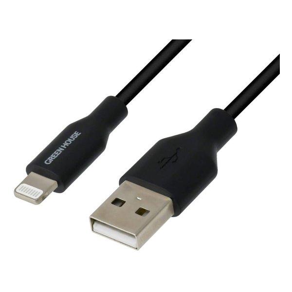 GREEN HOUSE グリーンハウス ライトニングケーブル 1m MFI認証 アルミ袋包装 ノーマルタイプ ブラック GH-ALTUG100-BK(2507063)