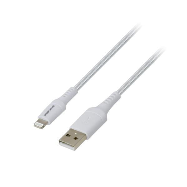 Lightning充電ケーブル GREEN HOUSE GH-ALTUTA15-WH 強靭ケーブル 15cm ホワイト メッシュケ