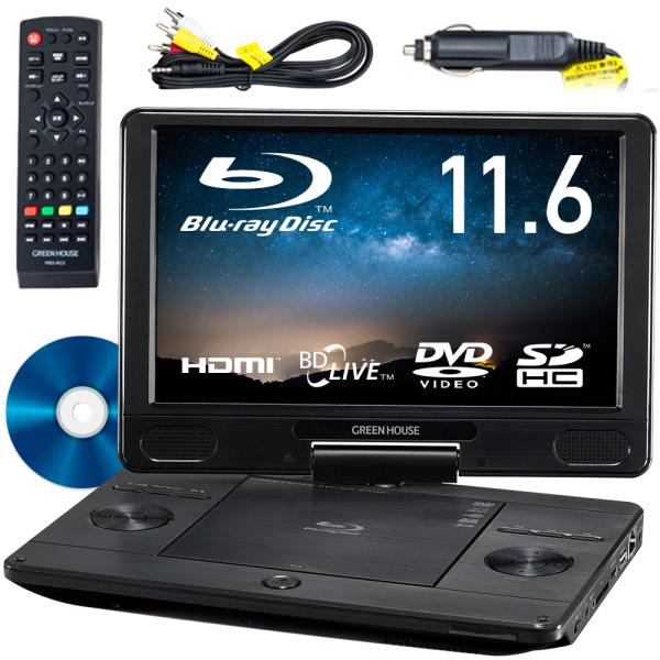 ポータブルdvdプレーヤー ブルーレイ hdmi 11.6型 大画面 ポータブルブルーレイプレーヤー dvdプレーヤー グリーンハウス gh-pbd11b-bk