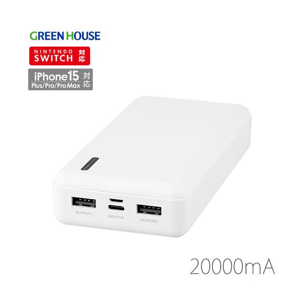 グリーンハウス モバイル充電器 20000mA ホワイト(ホワイト)