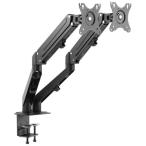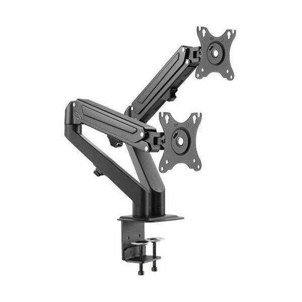 - 【商品解説】●こだわりのデュアルディスプレイ環境を構築したい、4軸2アーム単純な横並びのデュアルディスプレイだけでは無く、メイン画面とサブ画面を分けたり、タッチパネル液晶と通常の液晶ディスプレイを同時につけるなど、こだわりの環境を構築したいユーザーには画面の前後移動が可能な4軸2アームがオススメです。2つの画面それぞれを左右の移動はもちろん、前後、上下に移動でき、最適な位置に設置できます。 攻略サイトを見ながらゲームをする、2D、3Dグラフィックソフトを使うなど、広い作業画面を確保したい、作業によって画面との距離や2つのディスプレイの位置関係を変えたい ユーザーに最適です。●軽い力で画面を自在に動かせるガスプリング式アーム ガススプリングにより、少ない力で画面の上下移動ができ、他にも画面の前後移動にも対応しています。 画面位置を頻繁に動かし、映画鑑賞やグラフィックソフトの使用など、その都度快適な環境を構築したいヘビーユーザーに最適です。●デスク上のスペースを有効活用 液晶ディスプレイの台座(スタンド)がなくなって、デスク上すっきり! 液晶画面をお好みの位置に設置できるので、作業効率があがります。●しっかり固定するから転倒に強いC型クランプで机にしっかり固定するので、液晶ディスプレイの転倒を防ぎ、耐震にも効果があります。●縦位置での使用も可能 液晶ディスプレイを回転することができ、通常の横位置だけでなく縦位置での使用も可能です。Outlookやブラウザを縦位置の画面で使用すれば、一覧できる情報量があがりオススメです。●ケーブルをスッキリまとめられる、ケーブルガイド付き●安心の3年間保証●鉛などの含有量を抑えた環境にやさしい、RoHS指令対応 欧州の環境基準であるRoHS指令に準拠した、環境にやさしい製品です。【スペック】●型式:GH-AMCS02-BK(GHAMCS02BK)●JANコード:4511677129094仕様1:[対応サイズ]17〜27インチまで[対応規格]VESAマウントインターフェース規格(FPMPMI)75mm/100mm[耐荷重]2kg〜6.5kg ※2kg未満の液晶ディスプレイは使用できません。[可動範囲] チルト:上90°/下45° パン:左90°/右90° 回転:左180°/右180°仕様2:[寸法]W942×D98×H570(mm)[重量]約4.0kg[取付可能天板]厚さ 10mm〜80mm、奥行 100mm以上、幅 140mm以上[付属品]ディスプレイ取り付け用ネジ(M4x8、M4x12、M5x12)×各8、ワッシャー×8、六角棒レンチ&マイナスドライバー(3mm)、六角棒レンチ&プラスドライバー(5mm)、取扱説明書/保証書仕様3:VESA規格が合わないとご利用いただけません。ご購入前にVESA規格が合うか確認くださいこの商品は宅配便でお届けする商品です出荷可能日から最短日時でお届けします。※出荷完了次第メールをお送りします。配送サービス提供エリアを調べることができます「エリア検索」をクリックして、表示された画面にお届け先の郵便番号7桁を入力してください。ご購入可能エリア検索お買い上げ合計3,980円以上で送料無料となります。※3,980円未満の場合は、一律550円(税込)となります。●出荷可能日から最短日時でお届けします。(日時指定は出来ません。) ※お届け時に不在だった場合は、「ご不在連絡票」が投函されます。 「ご不在連絡票」に記載された宅配業者の連絡先へ、再配達のご依頼をお願いいたします。●お届けは玄関先までとなります。●宅配便でお届けする商品をご購入の場合、不用品リサイクル回収はお受けしておりません。●全て揃い次第の出荷となりますので、2種類以上、または2個以上でのご注文の場合、出荷が遅れる場合があります。詳細はこちら■商品のお届けについて商品の到着日については、出荷完了メール内のリンク(宅配業者お荷物お問い合わせサービス)にてご確認ください。詳しいお届け目安を確認する1度の注文で複数の配送先にお届けすることは出来ません。※注文時に「複数の送付先に送る」で2箇所以上への配送先を設定した場合、すべてキャンセルとさせていただきます。