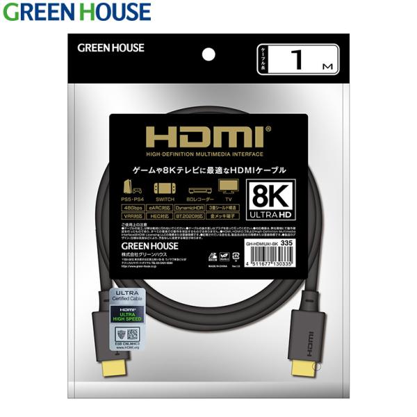 HDMIケーブル 1m hdmi テレビ pc モニター ディスプレイ ゲーム 4K 8K 3D テレビ スリム Switch PS5 GH-HDMIUA1-BK グリーンハウス