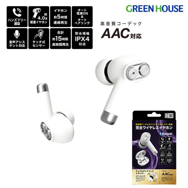 ワイヤレスイヤホン Bluetooth5.3 高音質 AAC ヘッドセットマイク内蔵 イヤフォン オートペアリング 片耳 GH-TWSP-WH グリーンハウス