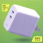 AC-USBアダプタ AC-USB充電器 2ポート Type-C*2 PD45W ホワイト グリーンハウス/GH-ACU2PF-WH/2636