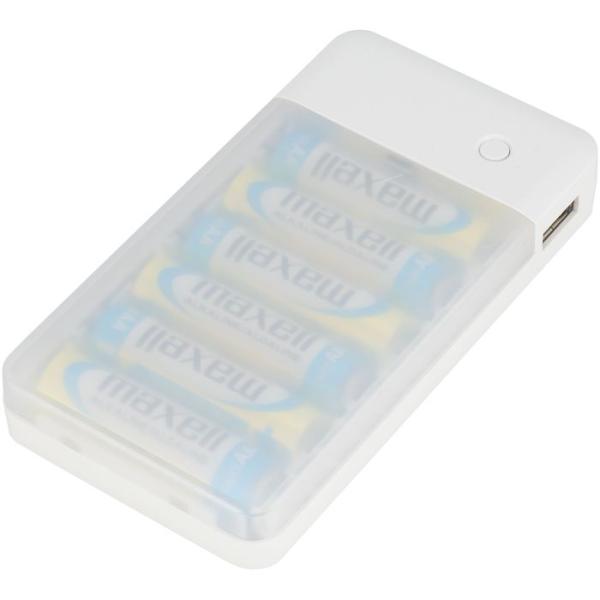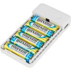 単3形アルカリ乾電池や単3形ニッケル水素電池を6本使用して、スマートフォンの充電ができる乾電池式モバイルバッテリーです。
