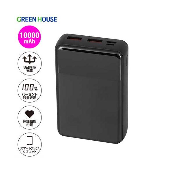 グリーンハウス モバイル充電器 PD20W 10000mA PSEマーク(ブラック)