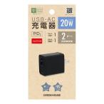 GREEN HOUSE グリーンハウス AC-USBアダプタ/Type-A&C/PD20W/ブラック GH-ACU2PG-BK(2611274)