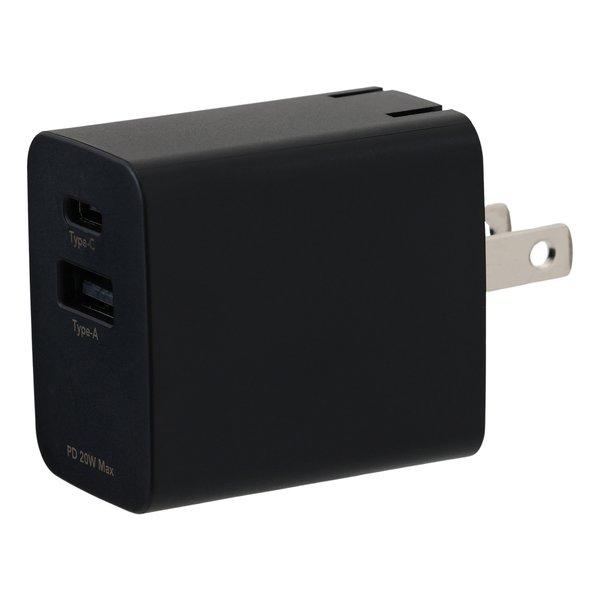 - ●最大出力20Wの急速充電に対応したコンパクトなAC充電器●スマートフォンやタブレットなどを急速充電、USB Power Delivery対応●高出力なのにコンパクト、収納式のコンセントプラグで持ち運びに便利●海外でも使える100V〜240V対応●※海外で使用する場合、各地域に対応した変換プラグが別途必要となります。●電気用品安全法の技術基準(PSE)に適合●短絡保護、過電流保護などの保護システムを搭載■入力:AC 100〜240V. 50Hz/60Hz. 0.6A■出力:USB Type-C 5V/3A. 9V/2.22A.12V/1.67A(最大20W)USB Type-A 5V/3A. 9V/2A.12V/1.5A(最大18W)USB Type-AとType-Cの同時使用時■最大出力15W (5V/3A)■出力端子:USB Type-C(メス)×1、USB Type-A(メス)×1■外形寸法:W43×D40×H28(mm)※プラグ収納時■重量:約55g■動作温度範囲:0℃〜35℃■動作湿度範囲:10〜90%(結露無きこと)■本体素材:PC■PSE:適合■RoHS指令:対応■保証期間:6ヶ月間■接続する機器によっては、完全充電ができない場合があります。■接続する機器によっては過充電となり、バッテリを傷める可能性がありますので、機器の充電ランプが消えたら速やかに接続した機器を外してください。■接続する機器や長時間の使用によって、製品が温かくなる場合があります。■発煙、異臭、異音など、異常が発生したら、すぐに接続機器を外し、ACコンセントから取り外し、使用を止めてください。■本製品の使用によるデータや接続する機器の破損について、弊社では一切の責任を負わないものとします。■記載されている会社名、製品名は各社の商標または登録商標です。■製品画像の色は実際の製品と異なる場合があります。■製品のデザイン、仕様は改良などにより、予告なしに変更する場合があります。■開封について、ケガのないよう、お取り扱いにご注意ください。Quick Chargeの充電規格には対応しておりません。すべてのUSB対応機器での動作を保証するものではありません。