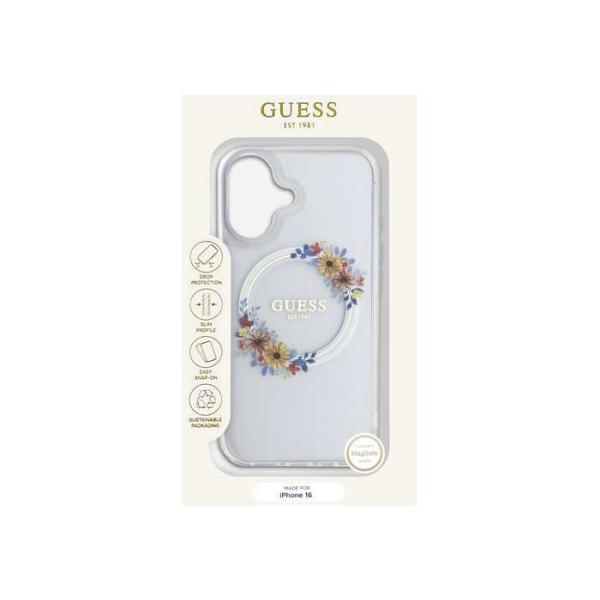 GUESS(ゲス) iPhone16用 フラワーリース 背面ケース GUESS GUHMP16SHFWFCT
