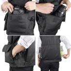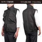 - 撮影を快適にする高機能カメラマンベスト【商品仕様】着丈:約710mm肩幅:約490mm身幅:約600mm重量:約670g材質:ポリエステル撮影時に必要な交換レンズやコンパクトカメラ、フィルター、ストロボ、ミニ三脚、スマートフォン等の小物が入る多数のポケットを装備し、背面の大型ポケットにはA4サイズの書類が入る、収納性に優れたカメラマンベストです。自然に着こなせ、カメラを首から提げた際の不快感を軽減するスタンドカラー(襟)仕様です。 カメラを首から提げた際の不快感を軽減するスタンドカラー仕様 自然に着こなせ、カメラを首から提げた際の不快感を軽減するスタンドカラー(襟)仕様です。 ストラップのずり落ちを防ぐ固定ベルト カメラを肩掛けして携行する際にストラップがずり落ちるのを防ぐ、ホック留めの固定ベルトを左右両肩に装備しています。 カメラの揺れを抑えるストラップ固定ベルト 腹部に設けたホック留めのストラップ固定ベルトにより、カメラを首から提げて携行する際に生じる揺れを抑えます。 機材の傷つきを防ぐファスナー保護カバー 正面中央のメインファスナーには保護カバーを装備しており、ファスナーにより機材が傷つくのを防ぎます。 ウエストサイズを調整できるアジャスターベルト アジャスターベルトにより体型に合わせてウエストサイズを調整できます。 フィルターやレンズキャップ等の収納に適したファスナーポケット 右胸上部に備えたファスナーポケットは、フィルターやレンズキャップ等の収納に適しています。 小物の収納に適したキーフック付きのポケット 右胸下部に備えたファスナーポケットは、コンパクトカメラや小物等の収納に適しています。内側にはキーフックを、外側にはワッペンなどを取り付けられる面ファスナーを装備しています。 ストロボやミニ三脚等の収納に適したファスナーポケット 左胸部分に備えた縦長のファスナーポケットは、ストロボやミニ三脚等の収納に適しています。 スマートフォン等の収納に適したポケット 左胸部分にはスマートフォン等の収納に適した面ファスナー式のポケットを備えています。 クッション材の入った大型ポケット 正面下部にはクッション材入りの大型ポケットを備え、一眼カメラのボディ等を収納できます。 クッション材の入った大型ポケット 正面下部の大型ポケットをは交換レンズの収納にも適しています。 ハンドウォーマーポケット 手を入れるのにちょうど良い位置にハンドウォーマー(=手を温める)ポケットを装備しています。 A4サイズの収納が可能な大型の背面ポケット A4サイズの書類や雑誌等が収納できる大型のファスナーポケットを背面に装備しています。開口部を左右両側に設けており、左右どちらからも出し入れが可能です。 カラビナ等を掛けられるループ カラビナ等を掛けられるループを左右のウエスト部分に装備しており、フォトグローブやポーチ等をぶら下げられます。 XLサイズ着用例 モデル身長/体重:172cm/80kg XLサイズ寸法 着丈:約710mm、肩幅:約490mm、身幅:約600mm 通気性の良いメッシュ裏地 裏地には通気性の良いメッシュを使用しています。内側にポケットはありません。