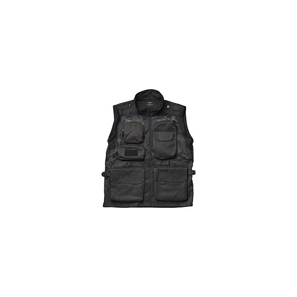 - 撮影を快適にする高機能カメラマンベスト。通気性に優れたメッシュタイプです。【商品仕様】着丈:約710mm肩幅:約490mm身幅:約600mm重量:約600g材質:ポリエステル撮影時に必要な交換レンズやコンパクトカメラ、フィルター、ストロボ、ミニ三脚、スマートフォン等の小物が入る多数のポケットを装備し、背面の大型ポケットにはA4サイズの書類が入る、収納性に優れたカメラマンベストです。自然に着こなせ、カメラを首から提げた際の不快感を軽減するスタンドカラー(襟)仕様です。通気性に優れたメッシュタイプです。 カメラを首から提げた際の不快感を軽減するスタンドカラー仕様 自然に着こなせ、カメラを首から提げた際の不快感を軽減するスタンドカラー(襟)仕様です。 ストラップのずり落ちを防ぐ固定ベルト カメラを肩掛けして携行する際にストラップがずり落ちるのを防ぐ、ホック留めの固定ベルトを左右両肩に装備しています。 カメラの揺れを抑えるストラップ固定ベルト 腹部に設けたホック留めのストラップ固定ベルトにより、カメラを首から提げて携行する際に生じる揺れを抑えます。 機材の傷つきを防ぐファスナー保護カバー 正面中央のメインファスナーには保護カバーを装備しており、ファスナーにより機材が傷つくのを防ぎます。 ウエストサイズを調整できるアジャスターベルト アジャスターベルトにより体型に合わせてウエストサイズを調整できます。 フィルターやレンズキャップ等の収納に適したファスナーポケット 右胸上部に備えたファスナーポケットは、フィルターやレンズキャップ等の収納に適しています。 小物の収納に適したキーフック付きのポケット 右胸下部に備えたファスナーポケットは、コンパクトカメラや小物等の収納に適しています。内側にはキーフックを、外側にはワッペンなどを取り付けられる面ファスナーを装備しています。 ストロボやミニ三脚等の収納に適したファスナーポケット 左胸部分に備えた縦長のファスナーポケットは、ストロボやミニ三脚等の収納に適しています。 スマートフォン等の収納に適したポケット 左胸部分にはスマートフォン等の収納に適した面ファスナー式のポケットを備えています。 クッション材の入った大型ポケット 正面下部にはクッション材入りの大型ポケットを備え、一眼カメラのボディ等を収納できます。 クッション材の入った大型ポケット 正面下部の大型ポケットをは交換レンズの収納にも適しています。 ハンドウォーマーポケット 手を入れるのにちょうど良い位置にハンドウォーマー(=手を温める)ポケットを装備しています。 A4サイズの収納が可能な大型の背面ポケット A4サイズの書類や雑誌等が収納できる大型のファスナーポケットを背面に装備しています。開口部を左右両側に設けており、左右どちらからも出し入れが可能です。 カラビナ等を掛けられるループ カラビナ等を掛けられるループを左右のウエスト部分に装備しており、フォトグローブやポーチ等をぶら下げられます。 XLサイズ着用例 モデル身長/体重:172cm/80kg XLサイズ寸法 着丈:約710mm、肩幅:約490mm、身幅:約600mm 通気性に優れたメッシュタイプ 表生地の大部分にメッシュを使った、通気性が良く熱のこもりにくいベストです。内側にポケットはありません。