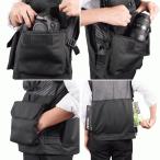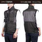 - 撮影を快適にする高機能カメラマンベスト。通気性に優れたメッシュタイプです。【商品仕様】着丈:約660mm肩幅:約460mm身幅:約560mm重量:約560g材質:ポリエステル撮影時に必要な交換レンズやコンパクトカメラ、フィルター、ストロボ、ミニ三脚、スマートフォン等の小物が入る多数のポケットを装備し、背面の大型ポケットにはA4サイズの書類が入る、収納性に優れたカメラマンベストです。自然に着こなせ、カメラを首から提げた際の不快感を軽減するスタンドカラー(襟)仕様です。通気性に優れたメッシュタイプです。 カメラを首から提げた際の不快感を軽減するスタンドカラー仕様 自然に着こなせ、カメラを首から提げた際の不快感を軽減するスタンドカラー(襟)仕様です。 ストラップのずり落ちを防ぐ固定ベルト カメラを肩掛けして携行する際にストラップがずり落ちるのを防ぐ、ホック留めの固定ベルトを左右両肩に装備しています。 カメラの揺れを抑えるストラップ固定ベルト 腹部に設けたホック留めのストラップ固定ベルトにより、カメラを首から提げて携行する際に生じる揺れを抑えます。 機材の傷つきを防ぐファスナー保護カバー 正面中央のメインファスナーには保護カバーを装備しており、ファスナーにより機材が傷つくのを防ぎます。 ウエストサイズを調整できるアジャスターベルト アジャスターベルトにより体型に合わせてウエストサイズを調整できます。 フィルターやレンズキャップ等の収納に適したファスナーポケット 右胸上部に備えたファスナーポケットは、フィルターやレンズキャップ等の収納に適しています。 小物の収納に適したキーフック付きのポケット 右胸下部に備えたファスナーポケットは、コンパクトカメラや小物等の収納に適しています。内側にはキーフックを、外側にはワッペンなどを取り付けられる面ファスナーを装備しています。 ストロボやミニ三脚等の収納に適したファスナーポケット 左胸部分に備えた縦長のファスナーポケットは、ストロボやミニ三脚等の収納に適しています。 スマートフォン等の収納に適したポケット 左胸部分にはスマートフォン等の収納に適した面ファスナー式のポケットを備えています。 クッション材の入った大型ポケット 正面下部にはクッション材入りの大型ポケットを備え、一眼カメラのボディ等を収納できます。 クッション材の入った大型ポケット 正面下部の大型ポケットをは交換レンズの収納にも適しています。 ハンドウォーマーポケット 手を入れるのにちょうど良い位置にハンドウォーマー(=手を温める)ポケットを装備しています。 A4サイズの収納が可能な大型の背面ポケット A4サイズの書類や雑誌等が収納できる大型のファスナーポケットを背面に装備しています。開口部を左右両側に設けており、左右どちらからも出し入れが可能です。 カラビナ等を掛けられるループ カラビナ等を掛けられるループを左右のウエスト部分に装備しており、フォトグローブやポーチ等をぶら下げられます。 Lサイズ着用例 モデル身長/体重:181cm/74kg Lサイズ寸法 着丈:約660mm、肩幅:約460mm、身幅:約560mm 通気性に優れたメッシュタイプ 表生地の大部分にメッシュを使った、通気性が良く熱のこもりにくいベストです。内側にポケットはありません。