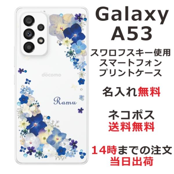 Galaxy A53 SC-53C SCG15 ギャラクシーA53 らふら 名入れ スマホケース ラインストーン スマホカバー 押し花風 ビビットブルーフラワー
