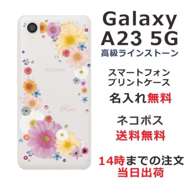 Galaxy A23 ギャラクシーA23 SC-56C SCG18 らふら 名入れ スマホケース ラインストーン スマホカバー 押し花風 ポップフラワー