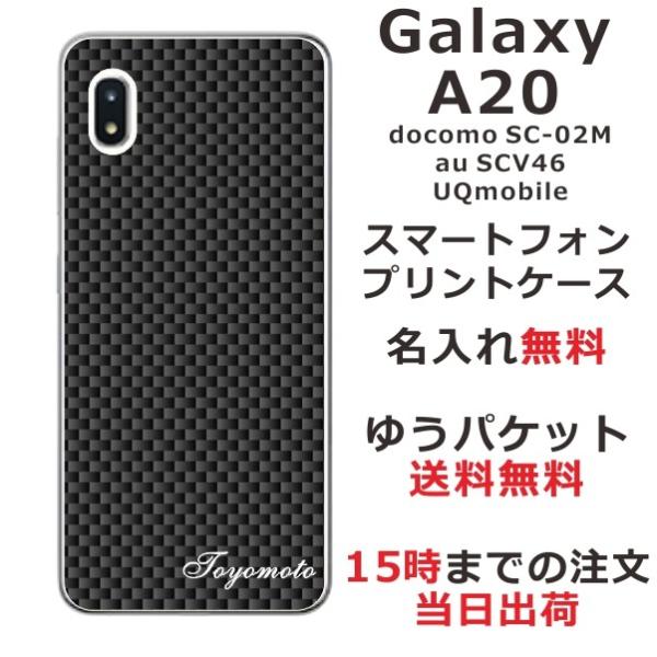 Galaxy A20 ケース SC-02M SCV46 ギャラクシーA20 カバー らふら 名入れ カーボン ブラック